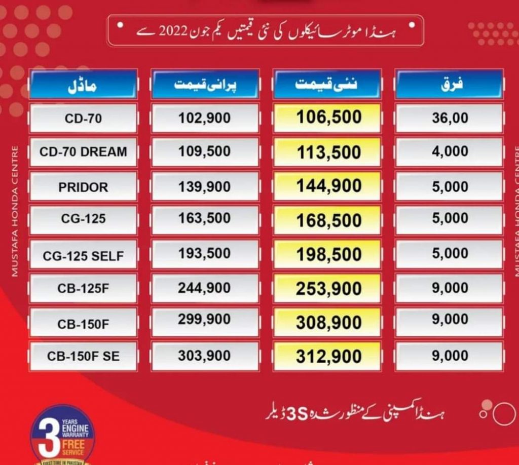 Honda Atlas, Pakistan’s oldest and most selling motorcycle company has decided to increase the motorcycle prices again . These new prices will be applicable from 1st June 2022.