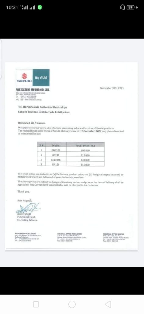 Pak Suzuki has revised it’s motorcycle prices and their motorcycles just got more expensive. These new prices will be applicable from today.
